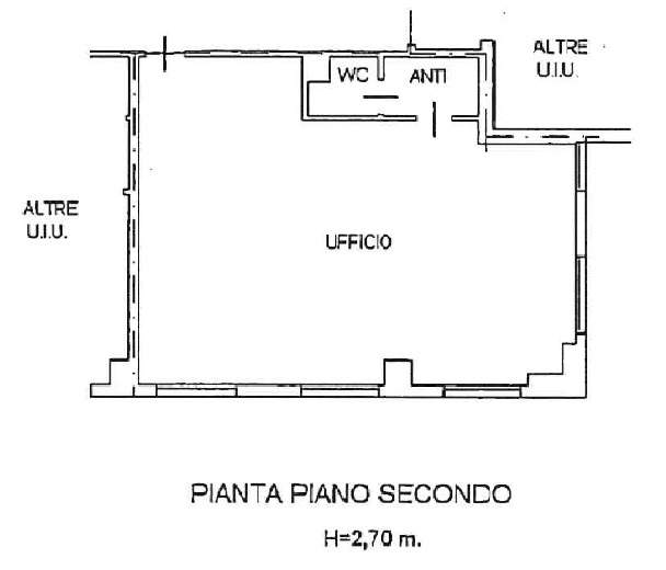 L’ufficio nasce come open space ed è attualmente configurato con una parete divisoria interna, realizzata dall’attuale conduttore per esigenze operative, che consente una più funzionale organizzazione degli spazi; tale configurazione potrà eventualmente essere mantenuta previo accordo con la parte uscente. L’unità è inoltre dotata di bagno con antibagno e boiler per la produzione di acqua calda.