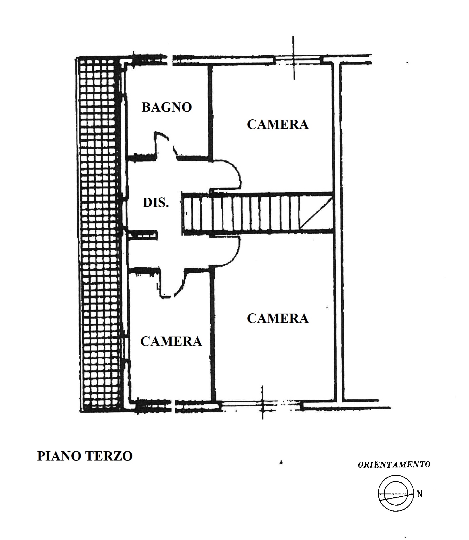 Al piano terzo si sviluppa la zona notte, composta da tre camere da letto, disimpegno con comoda armadiatura ricavata in nicchia, bagno finestrato con vasca e una terrazza di 13 m², accessibile sia da una camera sia dal disimpegno.