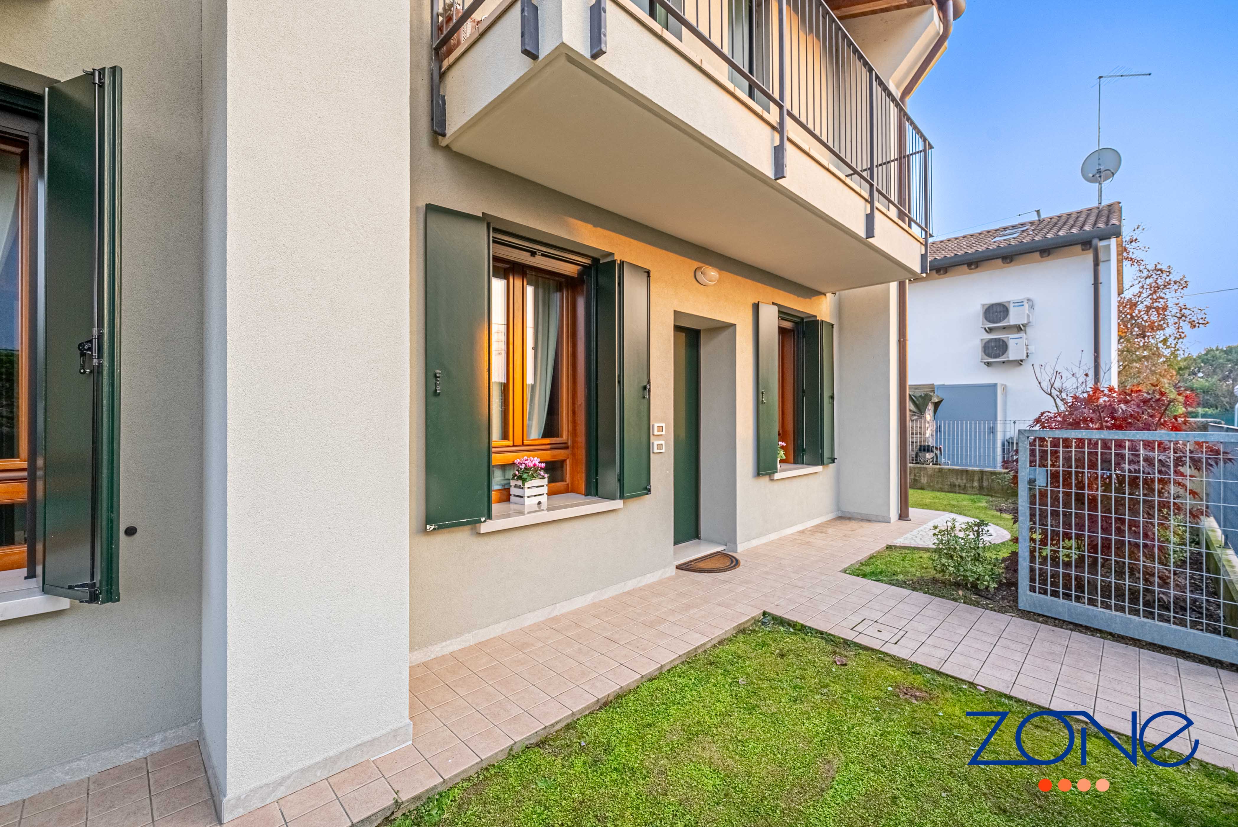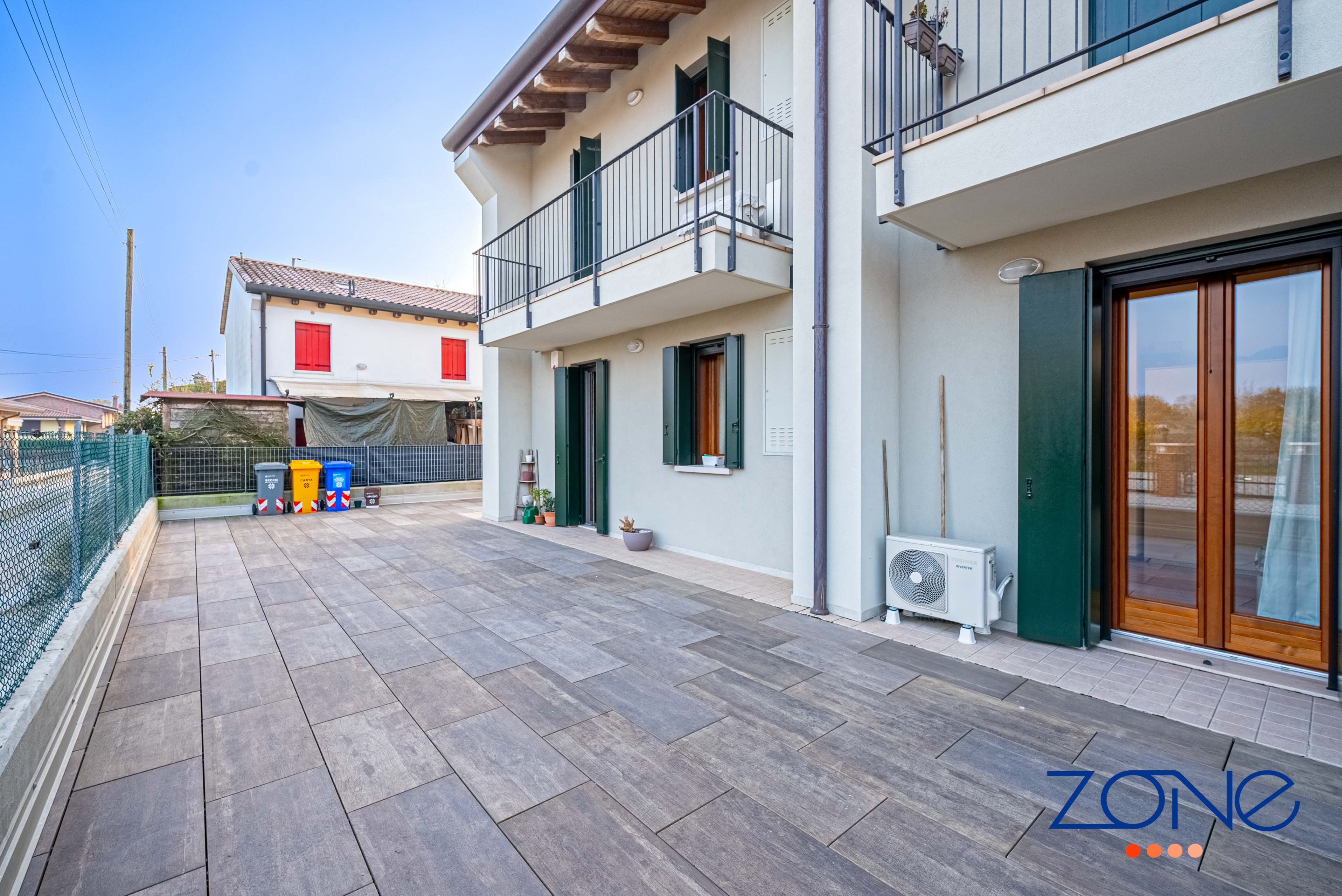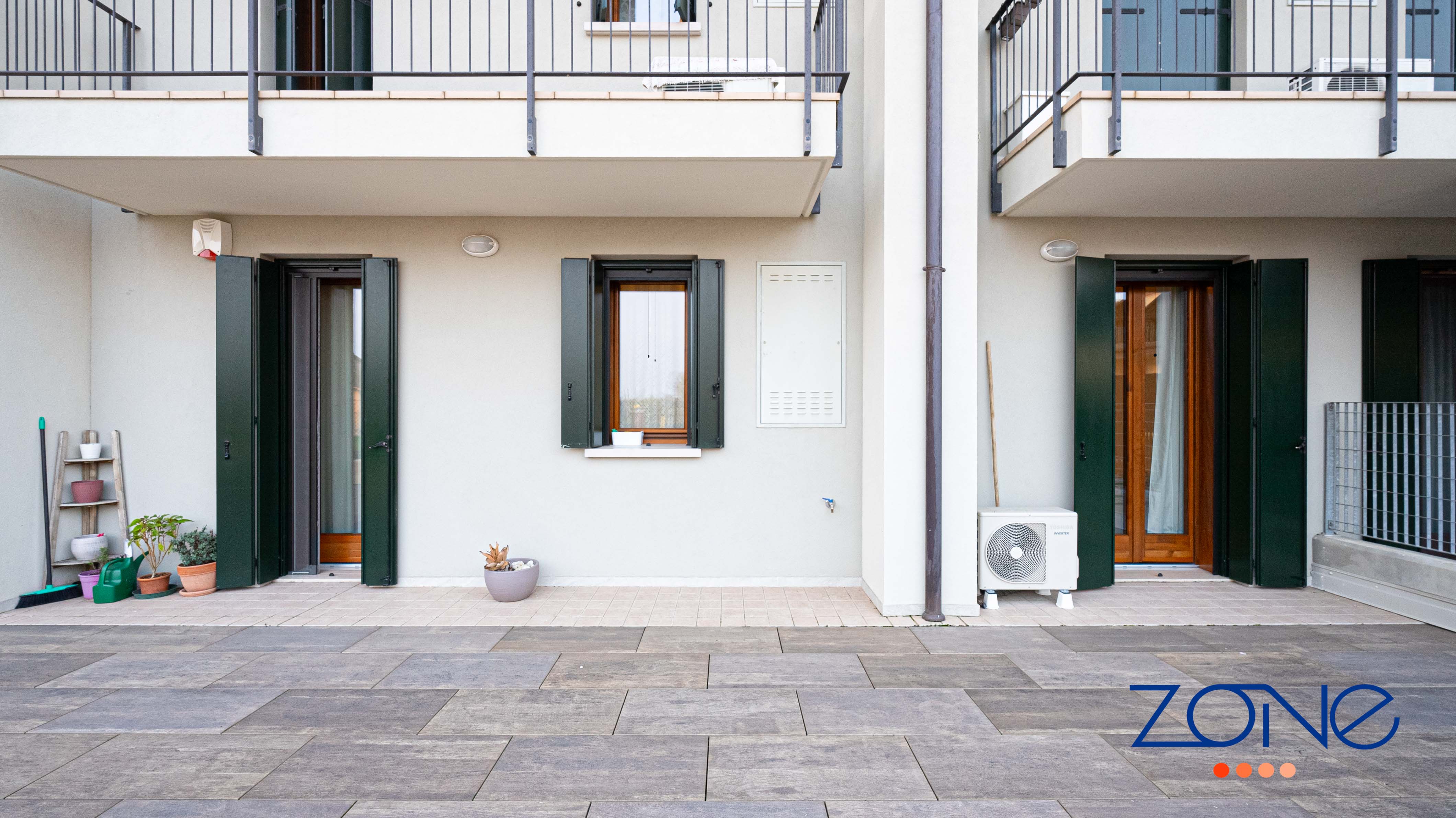 Castelfranco Veneto, Salvatronda: ZONE IMMOBILIARE propone in vendita in esclusiva un appartamento bicamere al piano terra con corte esclusiva di circa 133 mq, con accesso indipendente, in classe energetica B, inserito in palazzina curata e ben abitata di sole cinque unità abitative, ubicata in una zona residenziale tranquilla e chiusa al traffico.
